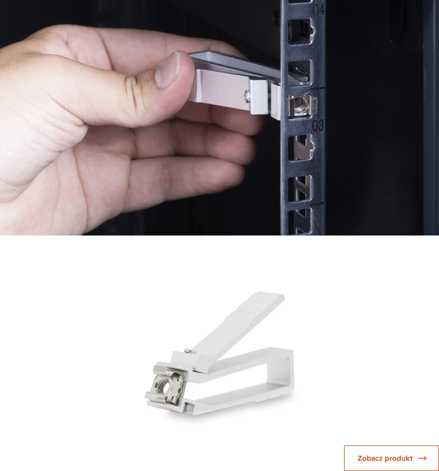 Służy do bezpiecznej instalacji lub usuwania koszyka, bez ryzyka jego uszkodzenia. Z jego pomocą praca z szafami serwerowymi jest o wiele łatwiejsza i przyjemniejsza.
